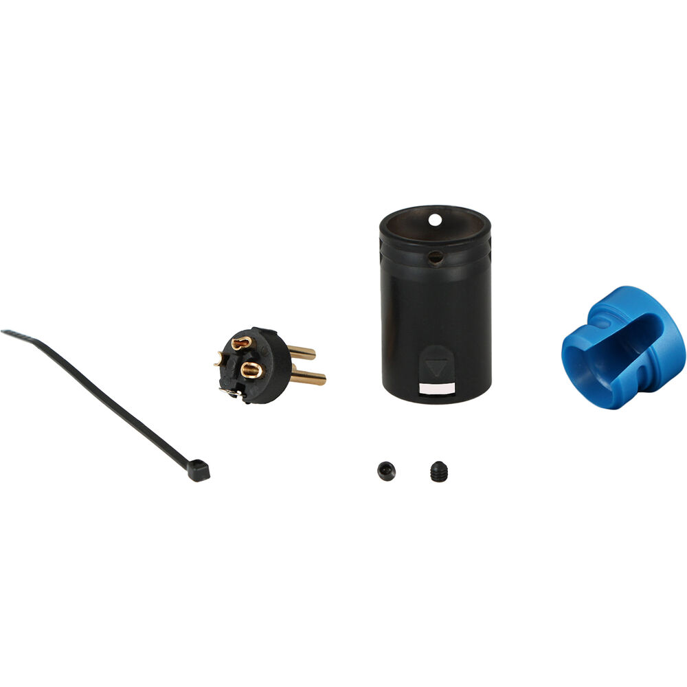 With its space-saving design, the Cable Techniques Low-Profile Right-Angle XLR 3-Pin Female Connector (Large Outlet, A-Shell, Blue Cap) is ideal for use on portable recorders and field mixers in audio bags. Its large cap has a cable outlet that accommodates cabling with diameters from 3.8 to 6mm while offering 120 degrees of adjustment swing around the 3 o'clock and 9 o'clock positions, allowing perfect placement in an array of configurations. This variant features gold pins, a black shell, and a blue cap.