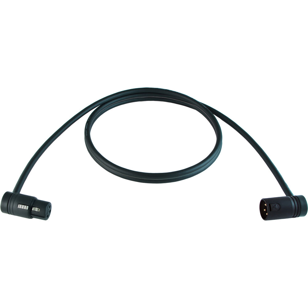 The 6' cable is terminated with a low-profile, right-angle XLR-3 female connector (with a black cap) at one end and a low-profile, right-angle XLR-3 male connector (with a black cap) at the other. You can adjust the low-profile XLR cable outlet orientation to fine-tune it to your exact needs with a 120° swing.