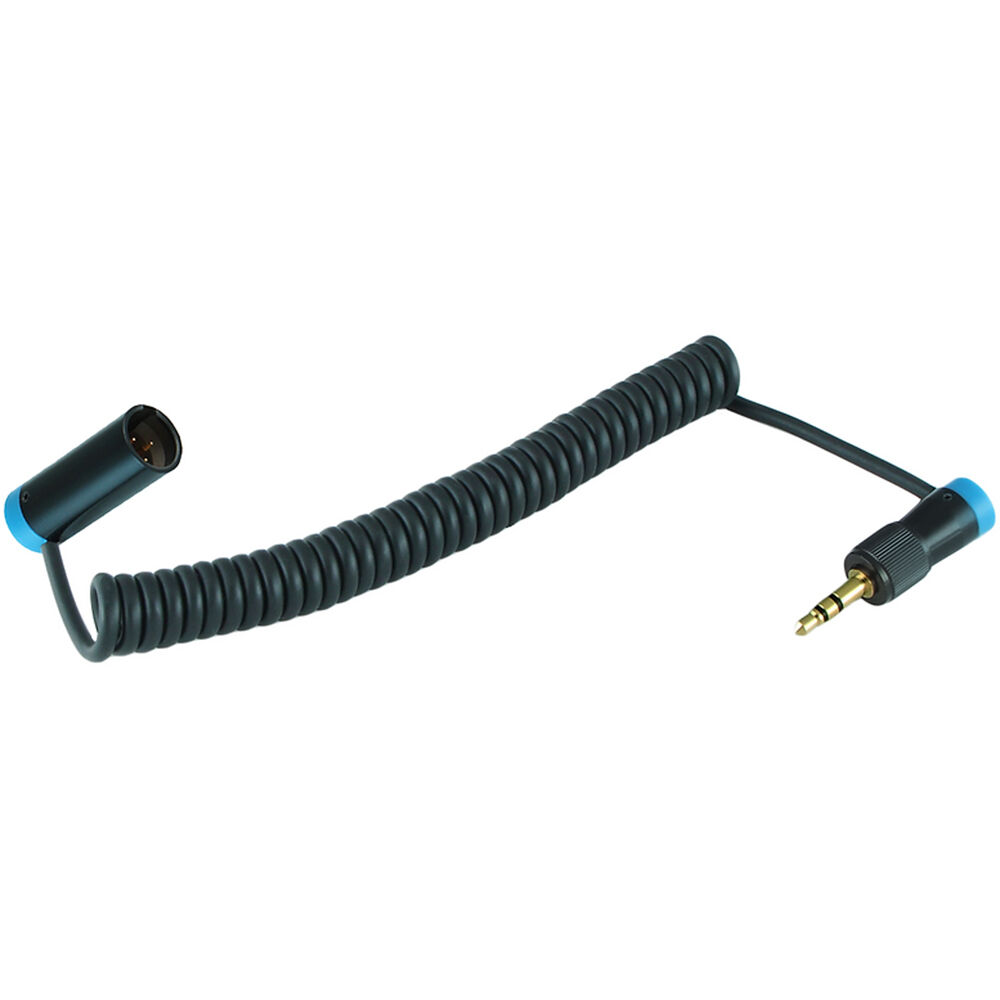 Wired for Sennheiser, the unbalanced cable is terminated with a right-angle locking 3.5mm TRS connector at the receiver end, and a low-profile, TA3 mini-XLR male connector at the other end. Up to 40% lighter than standard cables, this coiled cable extends from 8 to 15" and features low-profile connectors that are unobtrusive and field-durable—ideal for keeping your setup clean and organized. Both connectors have blue-color caps for easy identification.