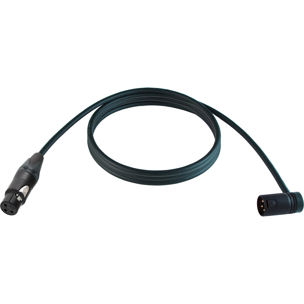 The 10' cable is terminated with a straight XLR-3 female Neutrik XX Series connector (with a black ring) at one end and a low-profile, right-angle XLR-3 male connector (with a black cap) at the other. You can adjust the low-profile XLR cable outlet orientation to fine-tune it to your exact needs with a 120° swing.