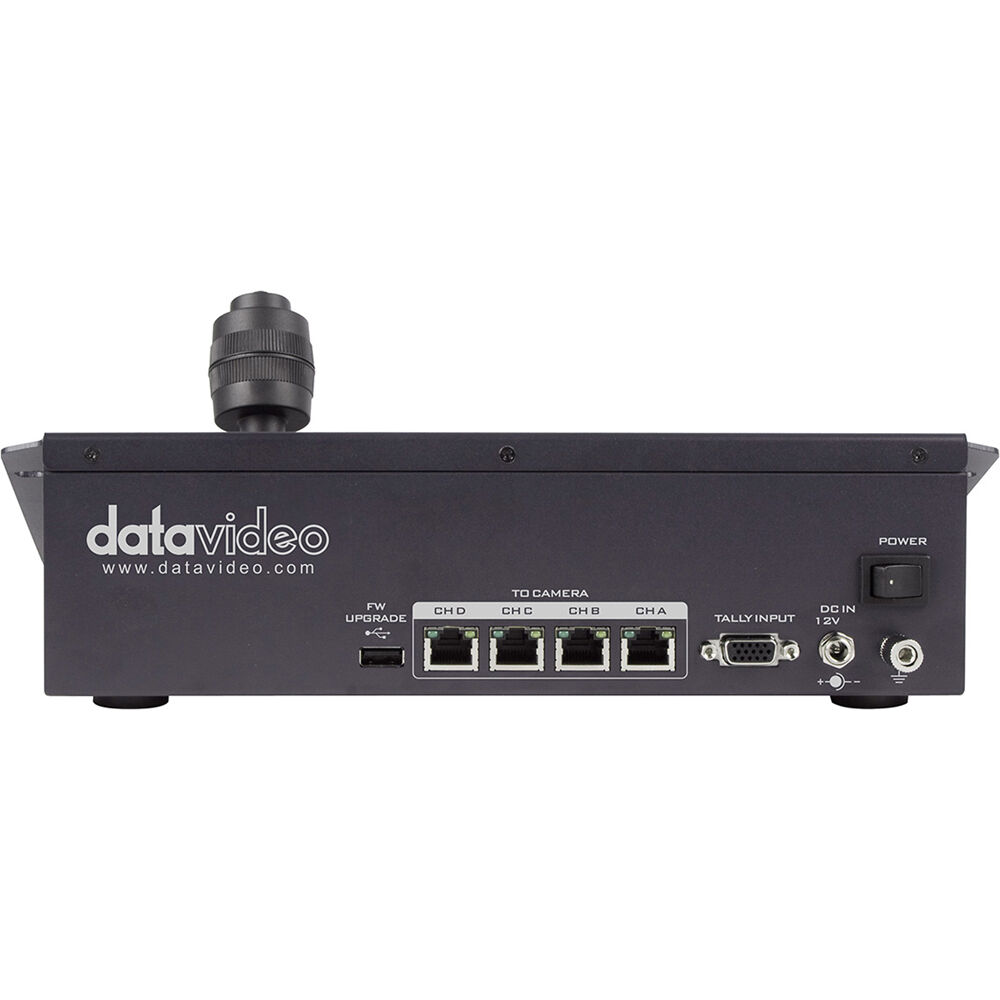 An ergonomic joystick and tactile button layout make for easy setup and control of up to four Datavideo PTZ cameras and robotic pan/tilt heads for any live production scenario.