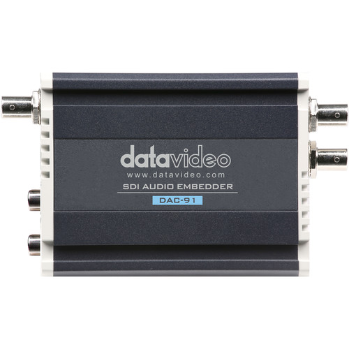 The DAC-91 2-Channel SDI Analog Audio Embedder from Datavideo autodetects SD, HD, and 3G signals and allows users to embed two channels of analog audio into SDI video signal. It features 3G/HD/SD-SDI and supports up to 1080p60 video formats, automatically detecting and switching between the different formats. It provides mini XLR and RCA audio connectors for inputting analog audio.