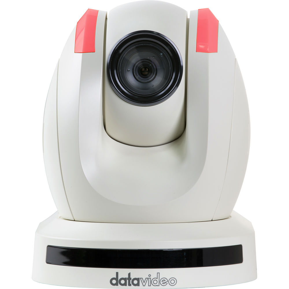 Capture high-resolution video up to 1080p with the white PTC-150 HD/SD PTZ Video Camera from Datavideo. It can be remotely controlled to perform pan, tilt, and zoom operations using the included IR remote control or by using a separately available serial PTZ controller. The camera can be mounted on a wall, ceiling, floor, or tabletop.