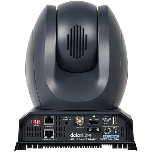 A number of control options enable easy access to the camera's host of both manual and automatic features. Datavideo has included a RMC-1AT infrared controller, offering a convenient shortcut to complete PTZ control. The remote has large rubberized buttons for the user to comfortably configure focus and zoom to desired settings with the ability to save up to four preset positions. It can control multiple Datavideo cameras at once and provides an instant solution for activating the PTC-305T's auto tracking.
