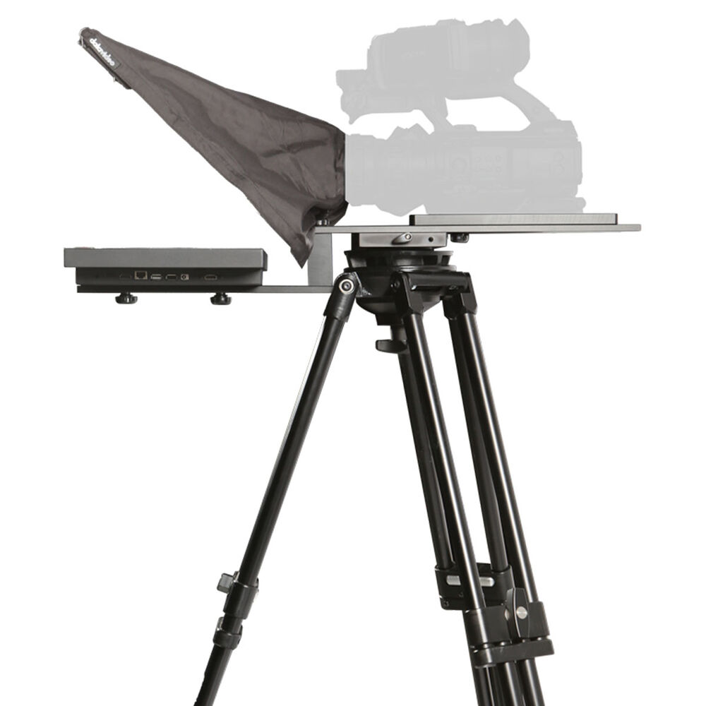 The TP-700 Large-Screen Prompter Kit from Datavideo is a professional teleprompter designed to be controlled wirelessly by a production team instead of talent. It features a streamlined design that features a 15" monitor with integrated dvPrompter Plus app, 70/30 beamsplitter glass, a cloth hood with frame, and a camera mounting rail, making it ideal for conferencing, government, corporate, education, and broadcast studios.