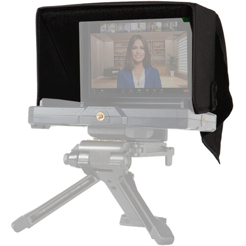 The kit fits the TLM-700K or TLM-700UHD 7" monitors, which are available separately, and includes strips to fit its form factor. It is designed to display any HDMI signal onto the beamsplitter glass for the talent to view. The set includes easy-to-install screws and brackets that can accommodate a small camera and any tripod with 1/4"-20 threads and screws.