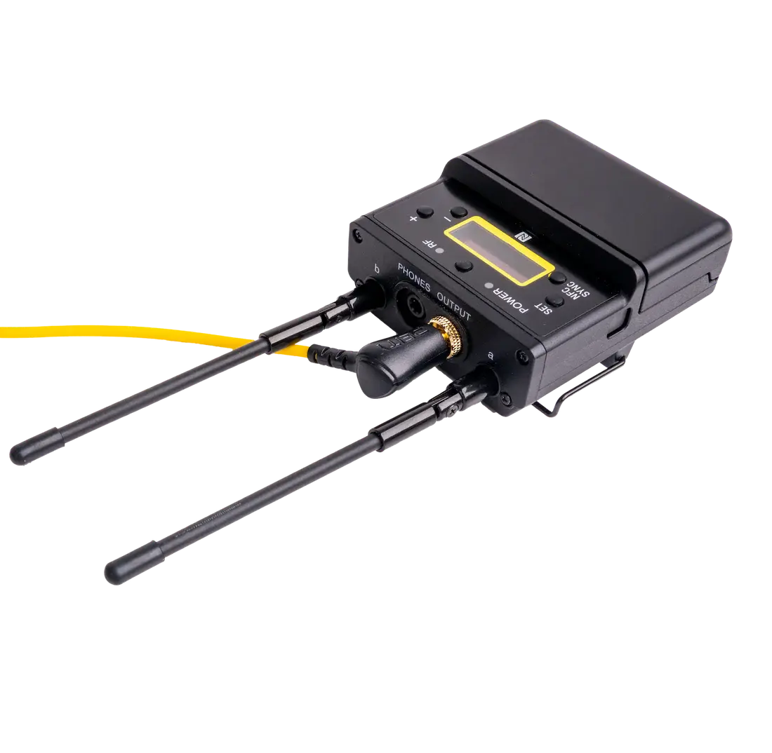 It is compatible with wireless microphone receivers like: