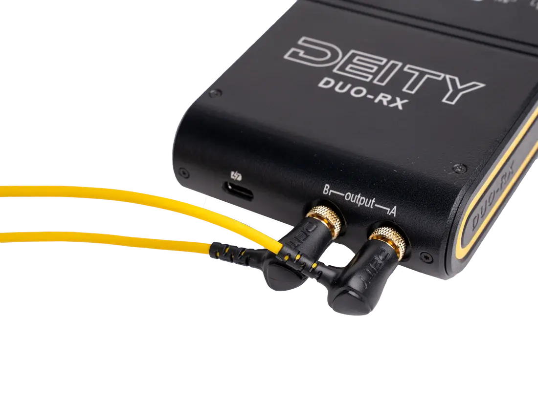 Deity RX-Link is a locking 3.5mm to a right-angle male connector.