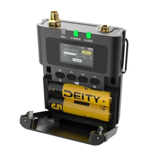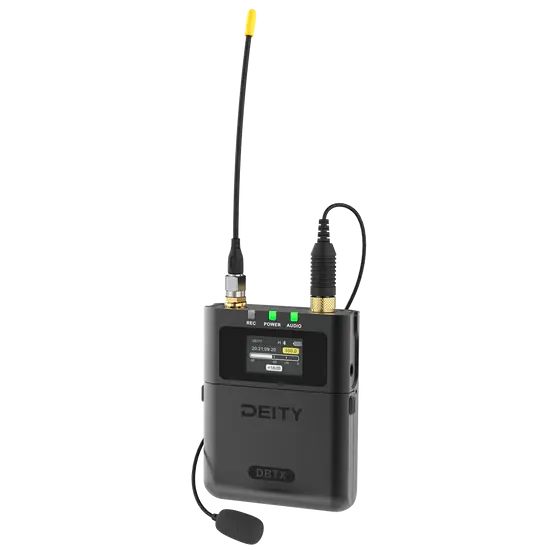 The Theos ecosystem's most unique feature is that the transmitter can be natively synced wirelessly from the Deity TC-1 timecode generator. Timecode ensures your alternative WAV files will sync with your camera footage in post. Alternatively, the DBTX can be synced via the 3.5mm jack if you are using 3rd party timecode generators.