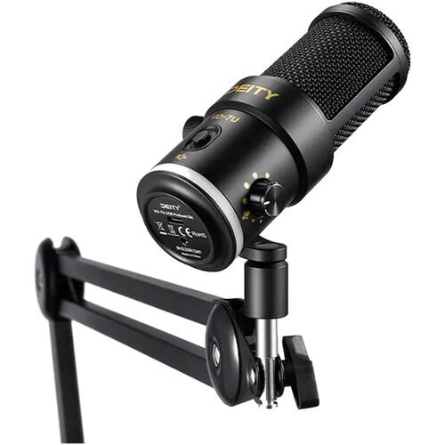 Level up your home podcasting game with the black VO-7U Dynamic Supercardioid USB Streamer Microphone Kit with Boom Arm from Deity. Engineered specifically to compensate for the poor acoustics in untreated home studios and workspaces, the mic features a large-diaphragm dynamic capsule that picks up less unwanted background sources further from the mic. In addition, its supercardioid polar pattern focuses audio capture tightly on the subject directly in front of the mic, further reducing unwanted background sound and picking up less room reverberations and reflections for clearer, more intelligible speech and voiceover work.