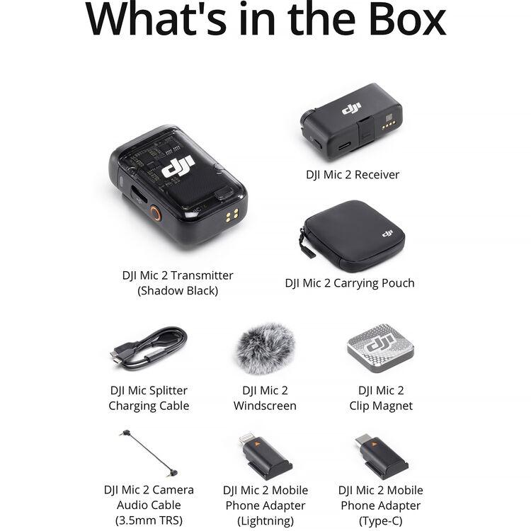 Content creators of all experience levels can raise the production values of their videos, interviews, and streaming with the DJI Mic 2, an easy-to-use, truly wireless digital microphone/recorder system that offers vivid audio quality while supplying all the elements needed to capture audio from your subject to a DSLR/mirrorless camera or iOS/Android smartphone. The system records clear and reliable audio at up to 820' via a miniature clip-on omnidirectional mic/transmitter, which doubles as backup recorder for worry-free wireless. The tiny receiver can either be mounted on a DSLR camera or plugged directly into the Lightning/USB port of a smartphone or laptop. Simply complete the initial setup and you can be ready to record quality audio in seconds.