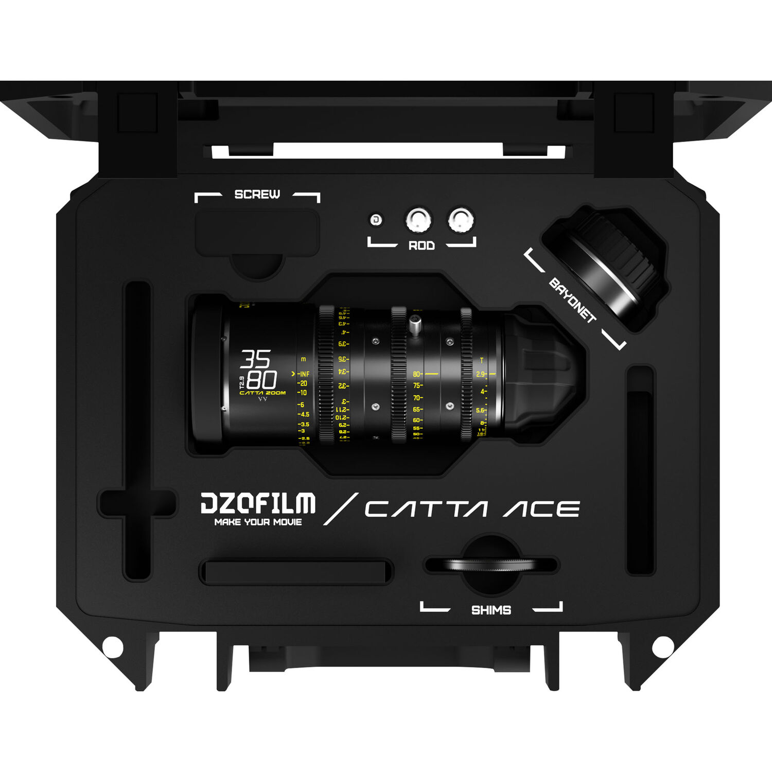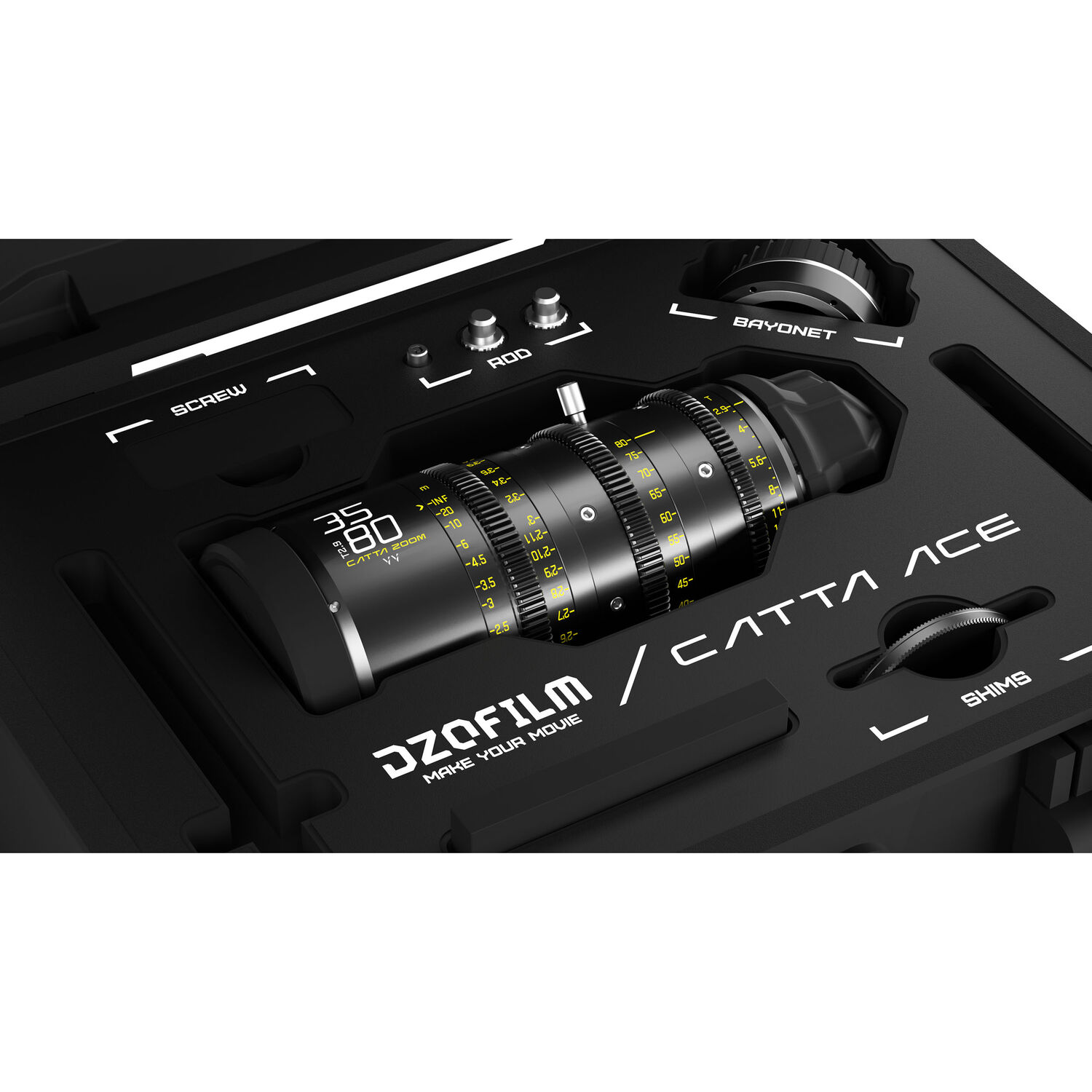 Add a cinema zoom lens to your documentary, broadcast, or online production kit with this white Catta Ace 35-80mm T2.9 PL-Mount Cine Zoom Lens from DZOFilm. The cine lens is designed to maintain focus as you smoothly zoom in or out. The Catta line reproduces accurate color and features a smooth focus/defocus transition. It features a wide T2.9 to T22 aperture, a 16-blade iris for a smooth bokeh, and a long 29.1" close focus range.