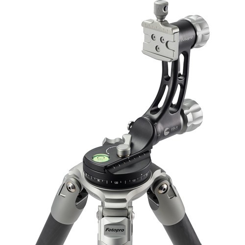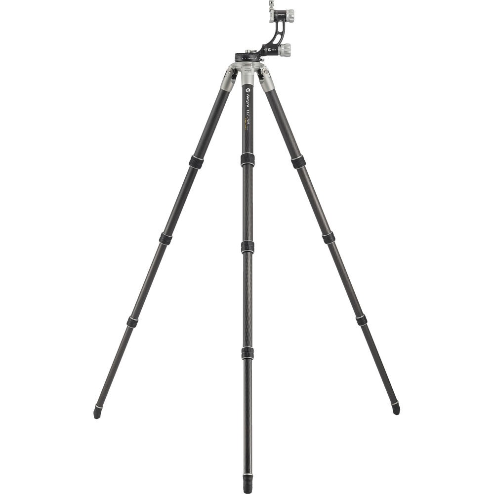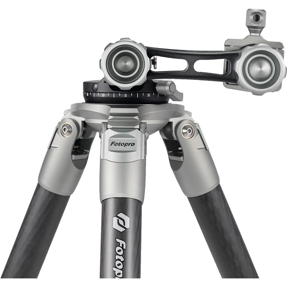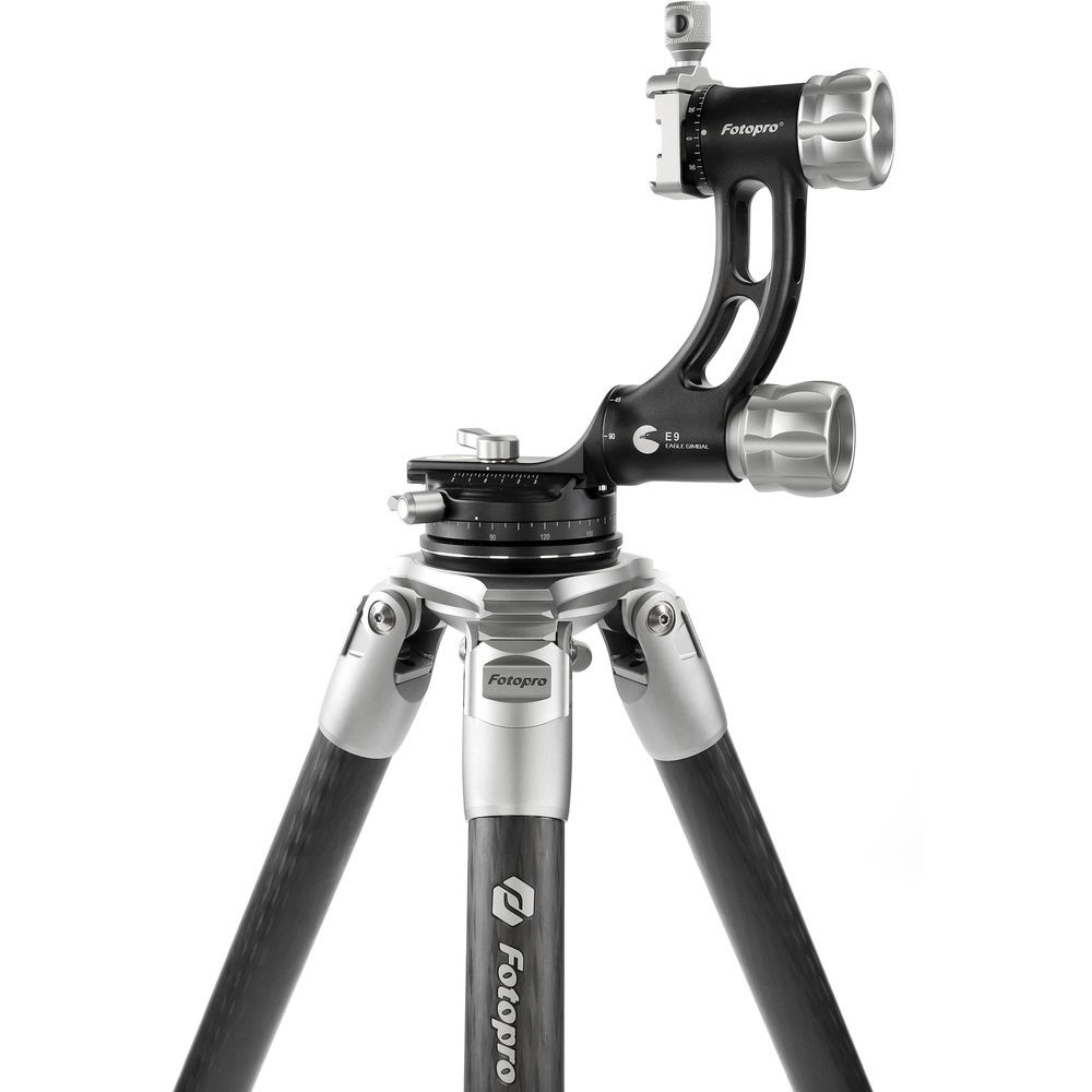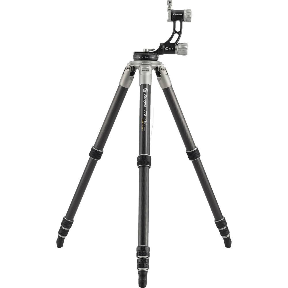 The E9 Eagle Series Tripod Kit from Fotopro is a 4-section carbon fiber support with twist locks that disengage with a quarter turn. Therefore, you are able to extend the legs from a folded length of 25.6" to a maximum height of 64". With its independent leg spread and three variable leg angles, you can lower the tripod to a minimum height of 6.3".