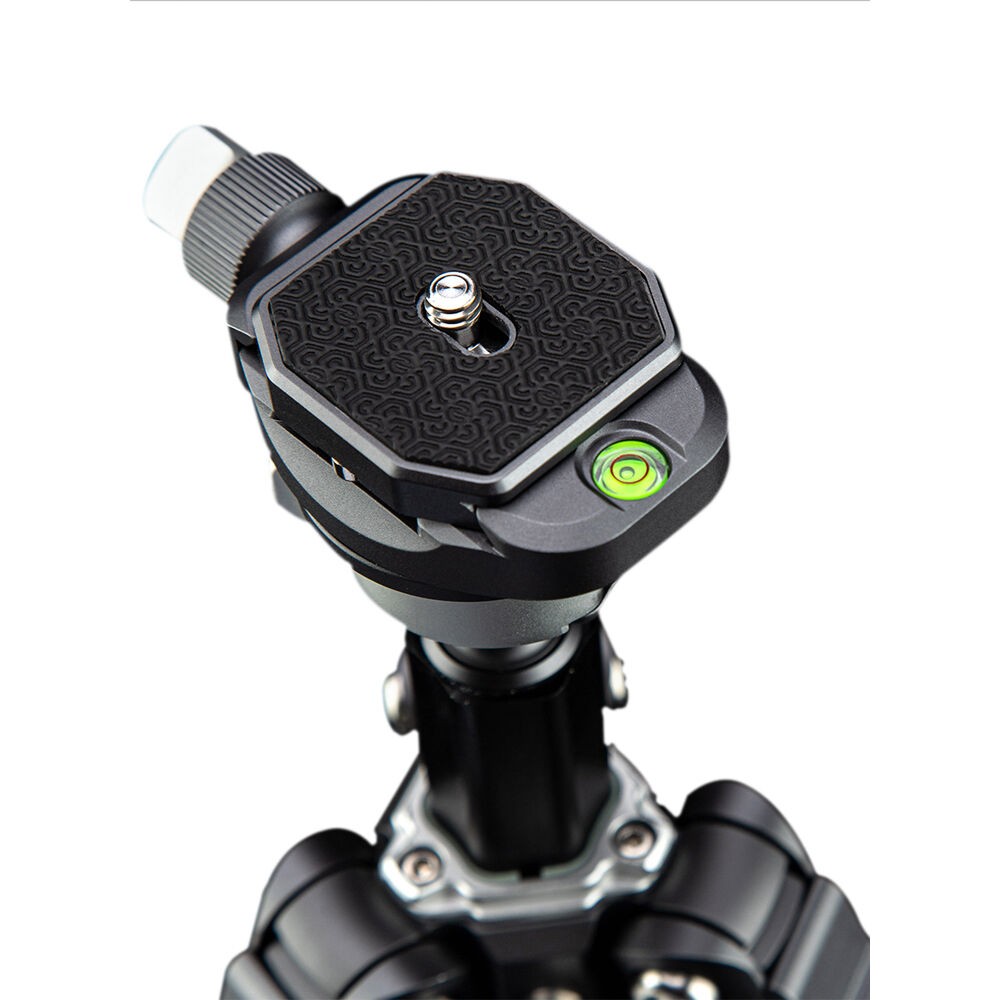 The compact ball head is a full-function head with an inverted-ball design, featuring a flip-lock mechanism to quickly adjust the camera position and then securely lock into place. It has an Arca-type quick release set, a numbered scale on its panoramic base, and a bubble level for precise positioning.