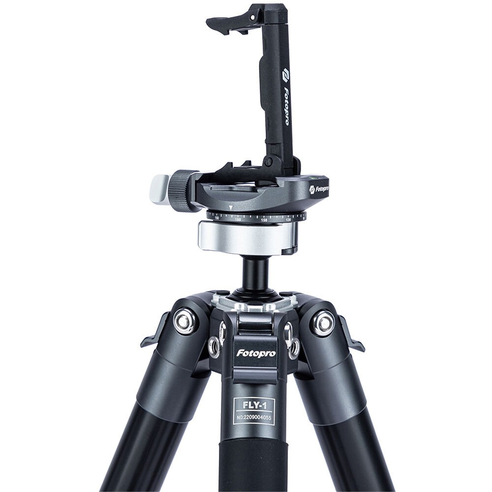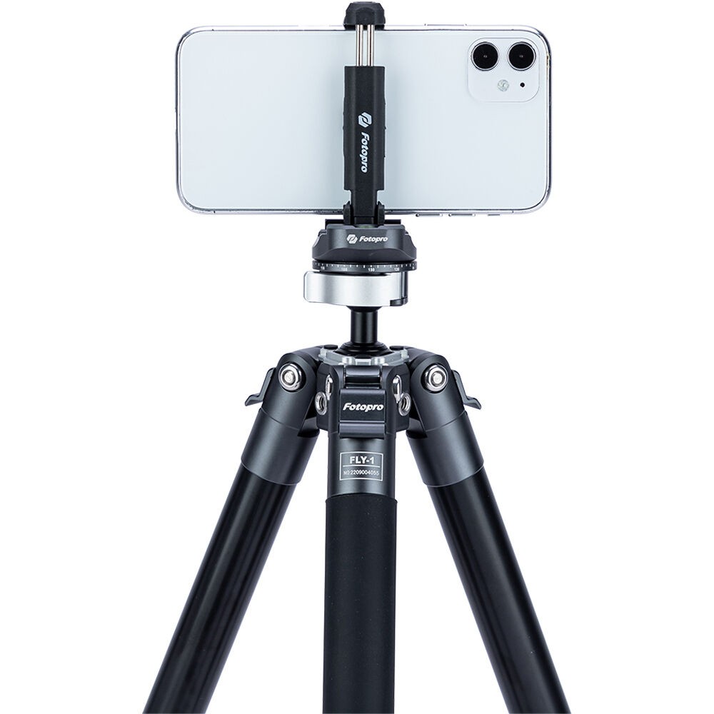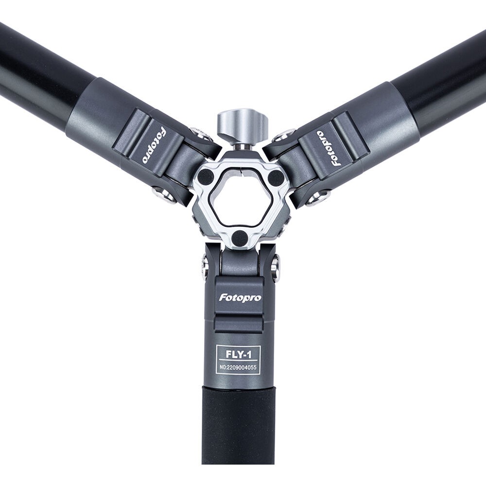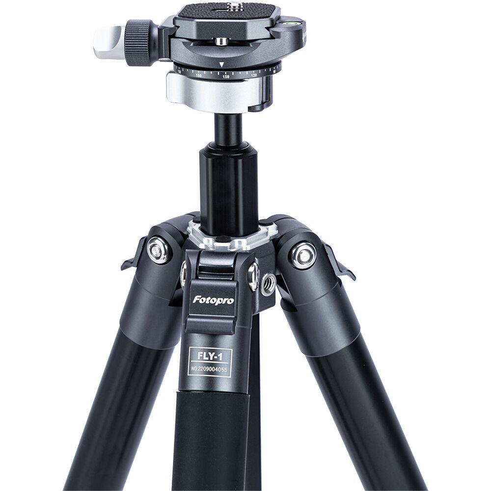 The FLY-1 Aluminum Travel Tripod with Arca-Type Ball Head from Fotopro is a compact and lightweight aluminum travel tripod designed for travel and location photography. It has a maximum height of 59.3" and can support cameras weighing up to 11 pounds, but weighs only 2.2 pounds. It folds down to a compact 14.8", easy to tuck into a backpack or carry-on luggage. The legs quickly extend and collapse with a simple twist. Each leg can be positioned independently, making it possible to level the tripod on uneven surfaces.