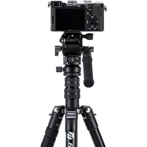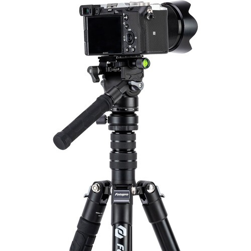 Create smooth pan and tilt moves with your small camera rig using the lightweight MH-4L Fluid Video Head from Fotopro. The tiny metal fluid head features a flat 43mm base for mounting onto a separately available compact tripod using its 1/4"-20 base thread, which can also convert to a 1/4"-20 thread with the included screw insert. Its maximum load capacity is 6.6 lb, and it only weighs 14 oz, ideal for travel. A quick-leveling base allows you to quickly level your rig on the MH-4L without requiring adjustments to your tripod legs.