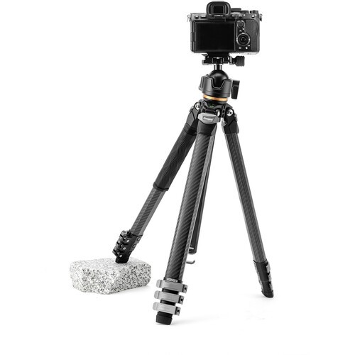 The Origin Plus Travel Tripod features a lightweight, 3.4 lb carbon fiber build, a maximum load capacity of 44.1 lb, an adaptable working height range of 6.7 to 60.4", and a portable folded length of 19.8". The dual-head pan/tilt system mounts to the removable center column for extendable height, or it can be mounted directly to the tripod base for low-angle shots. The panoramic head provides flat, consistent panning, while the pan/tilt ball head maximizes freedom of movement. The included mounting plate is Arca-Swiss compatible for quick and easy camera attachment.