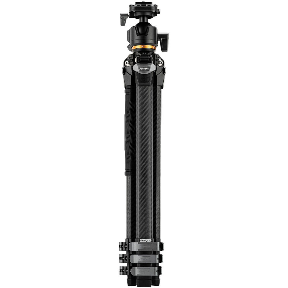 Designed for photographers and videographers on the move, the Fotopro Pantour Origin Plus Travel Tripod combines convenient portability with dependable stability. It sports three uniquely designed, triangular legs that enhance the tripod's resistance to pressure and torsion, and fold into a compact cylinder that takes up a third less space than collapsed tripods with round tubes. Adjusting the four-section legs is made effortless by the spring-loaded flip locks.