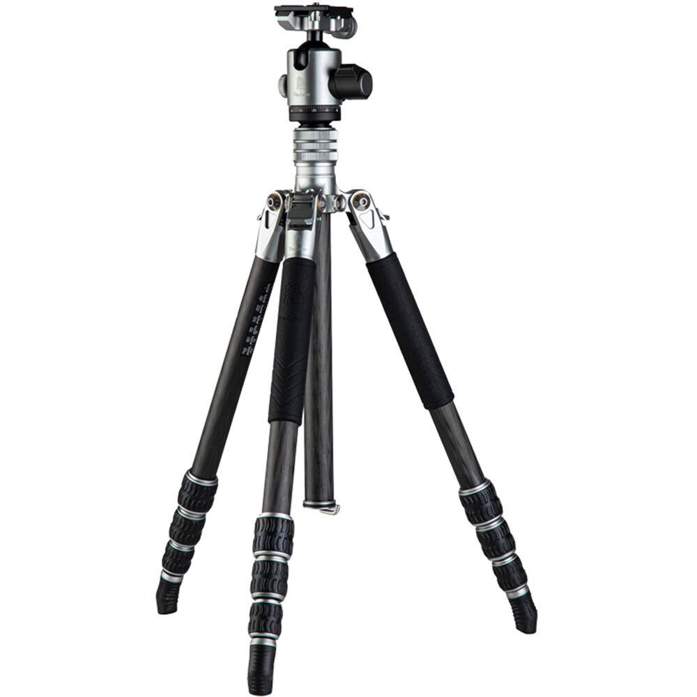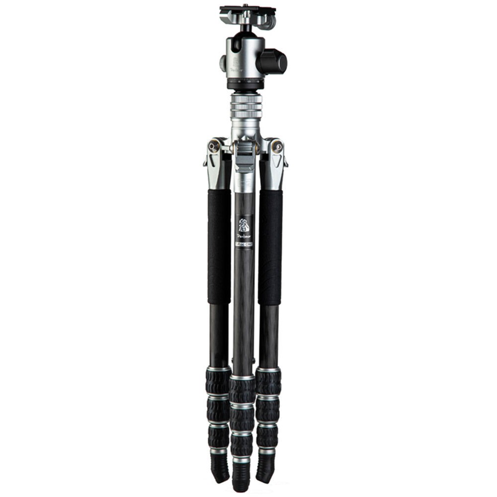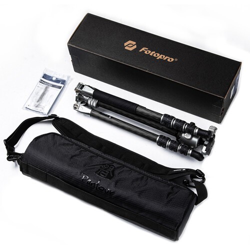 The T-Roc ONE Professional Tripod from Fotopro is a 4-section carbon fiber support with twist locks. The locks disengage to extend the legs along with the rapid center column from a folded length of 15.7" to a maximum height of 54.9". With its three variable leg angles and its independent leg spread, the 2.75 lb tripod can be set 7.8" off the ground for low-angle or macro photography. The Arca-type ball head, which has a load capacity of 22 lb, has a main locking knob to control the ball movement and a separate pan lock. The included quick release plate has a 1/4"-20 threaded camera mount.