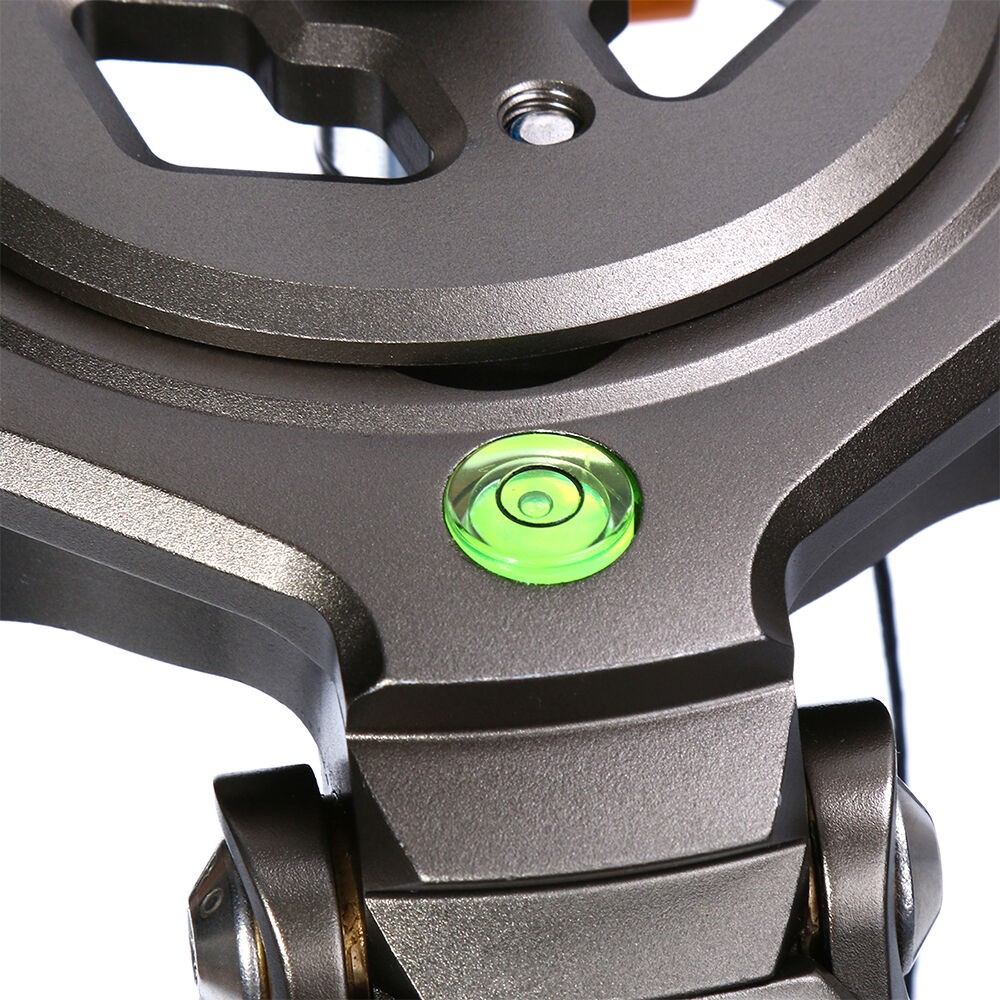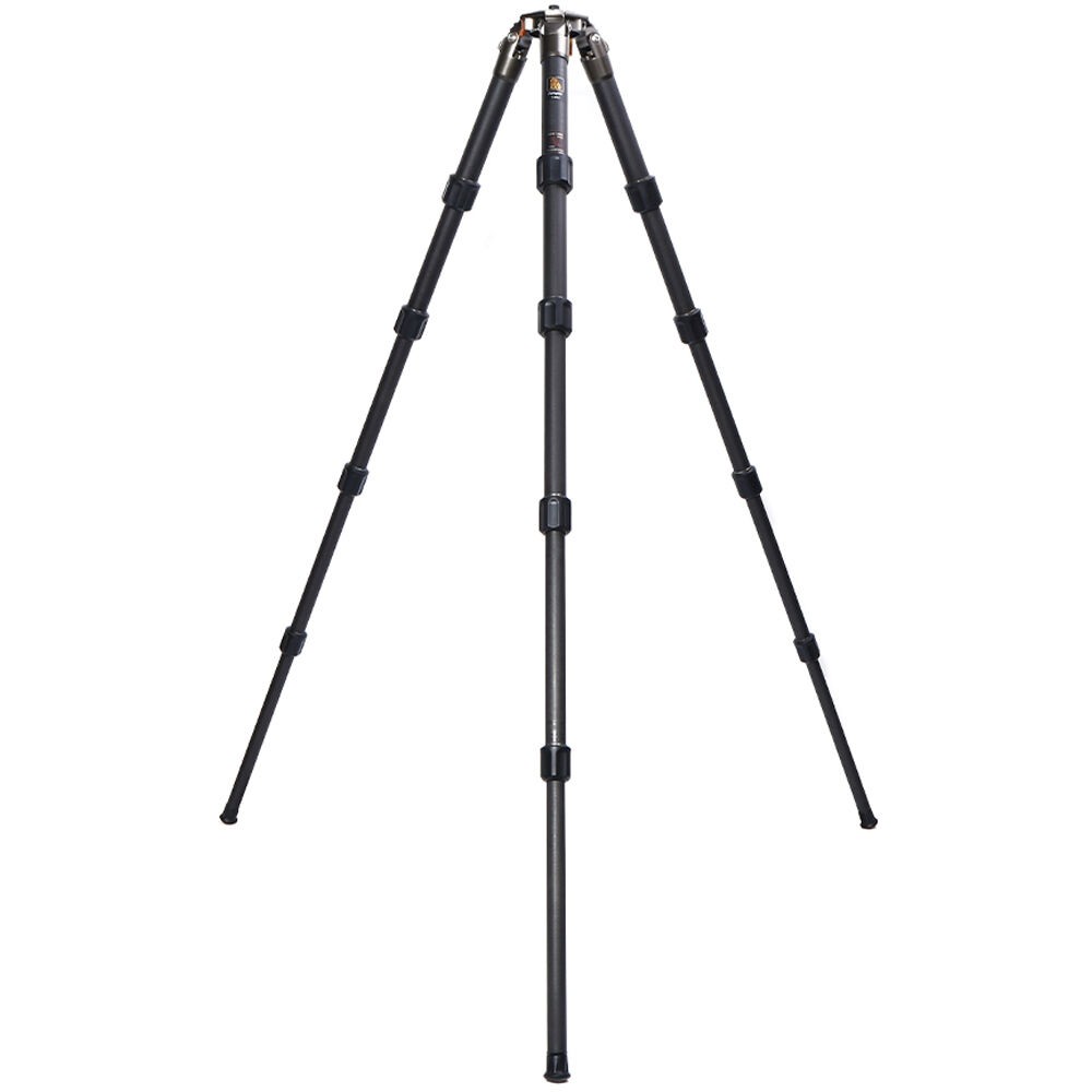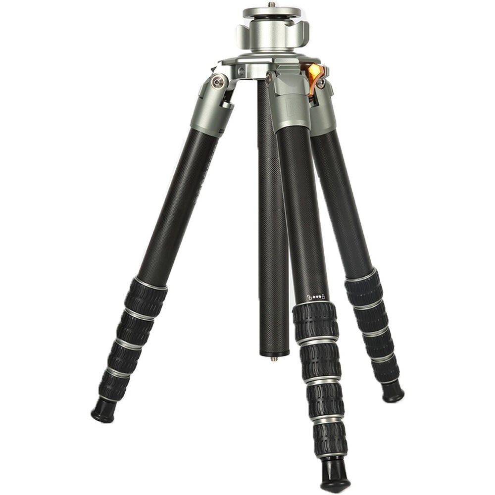 The TL-85C Carbon Fiber Tripod Kit from Fotopro is 5-section support with a load capacity of 66.1 lb that can maintain large telephoto lens and camera setups with ease. The 4.8 lb tripod has a twist leg lock system, which you can disengage and extend to the legs' maximum height of 53.5". With its independent leg spread, the tripod can conform to uneven terrain. The rubber feet prevent the tripod from sliding on smooth surfaces, and the feet are removable, revealing spikes to further stabilize the support on softer terrain. Splaying its legs all the way out, the support can go as low as 4.3" and enables you to do macro photography. The tripod folds to 18.7", so you can travel with it easily to your next destination. This kit also includes a 100mm bowl, a center column and platform, and a carrying case.