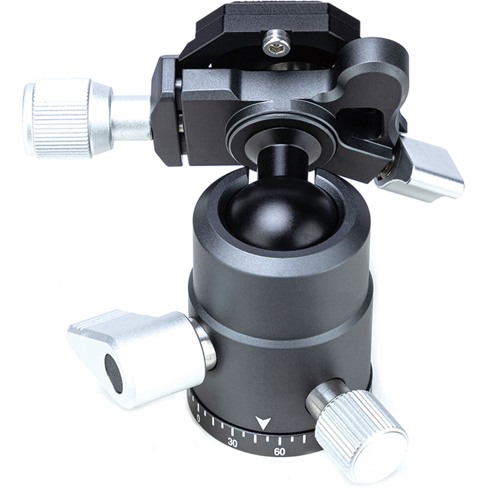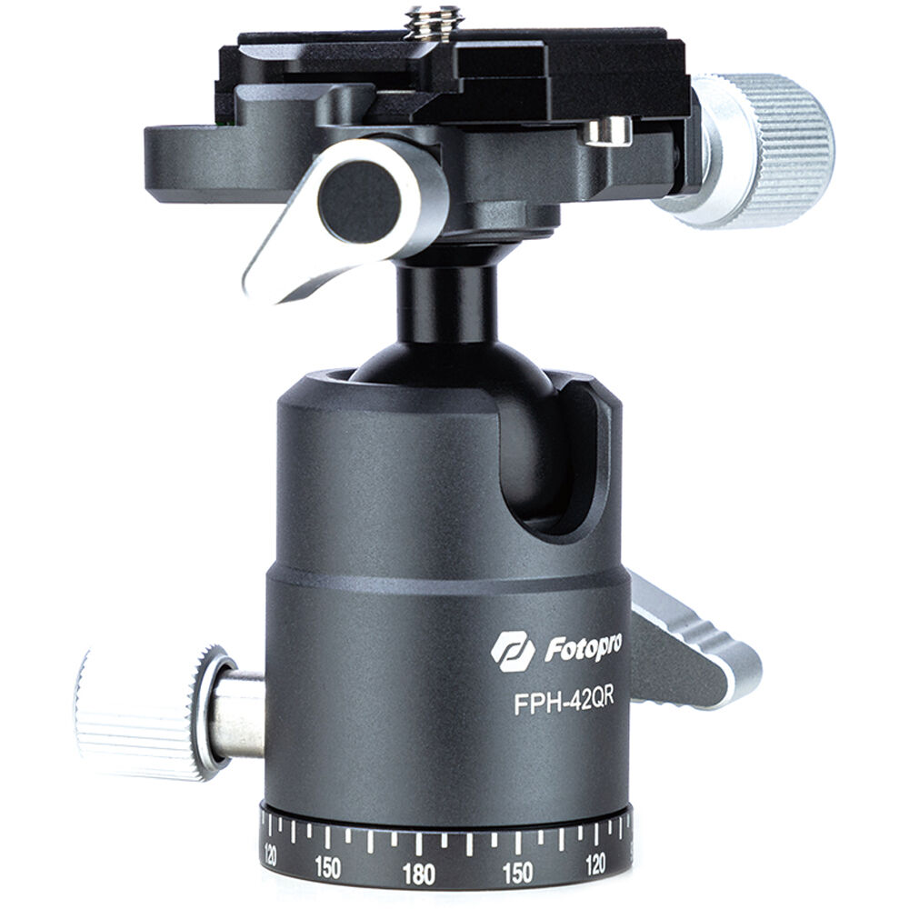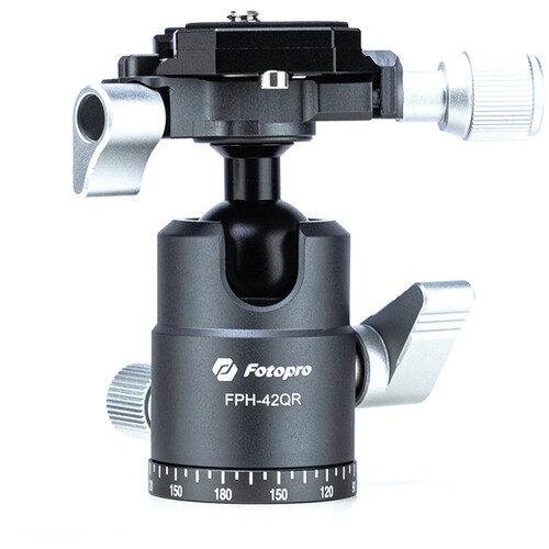 The FPH-42QR ball head is solid and stable, even when using heavy cameras with large lenses. It offers dual panoramic functions, one at the base of the quick release set, and a classic panoramic base with a precision numbered scale and independent locking knob. It features an Arca-type quick release set and has a bubble level for precise positioning.