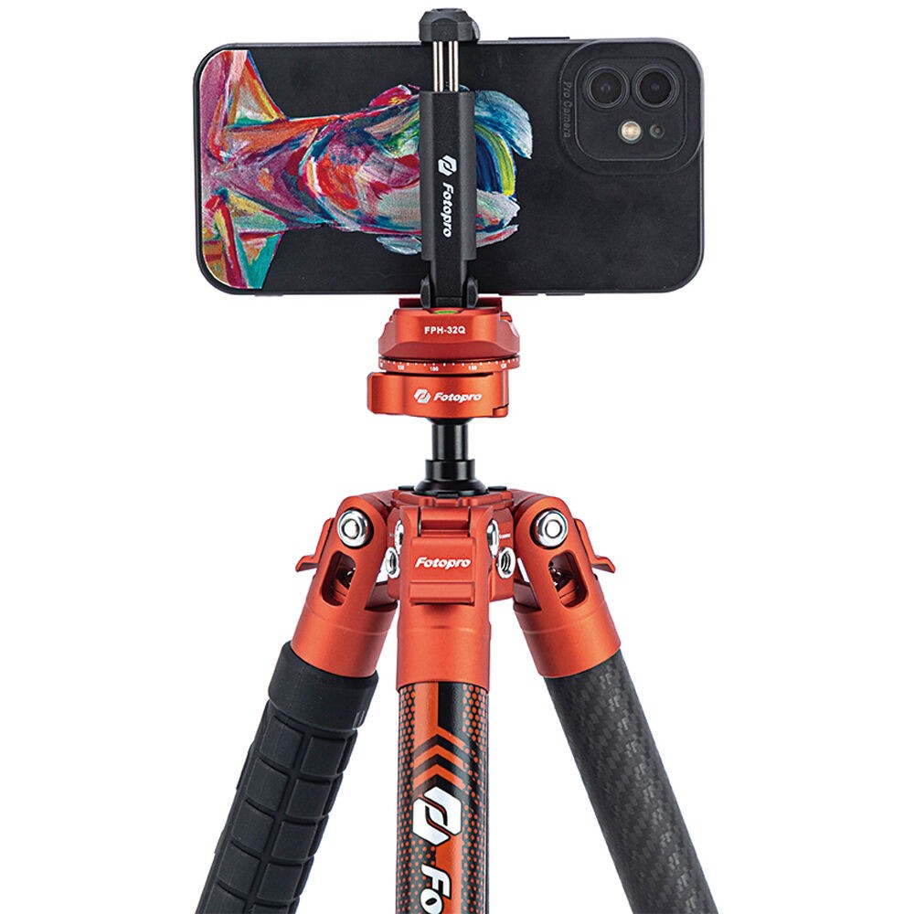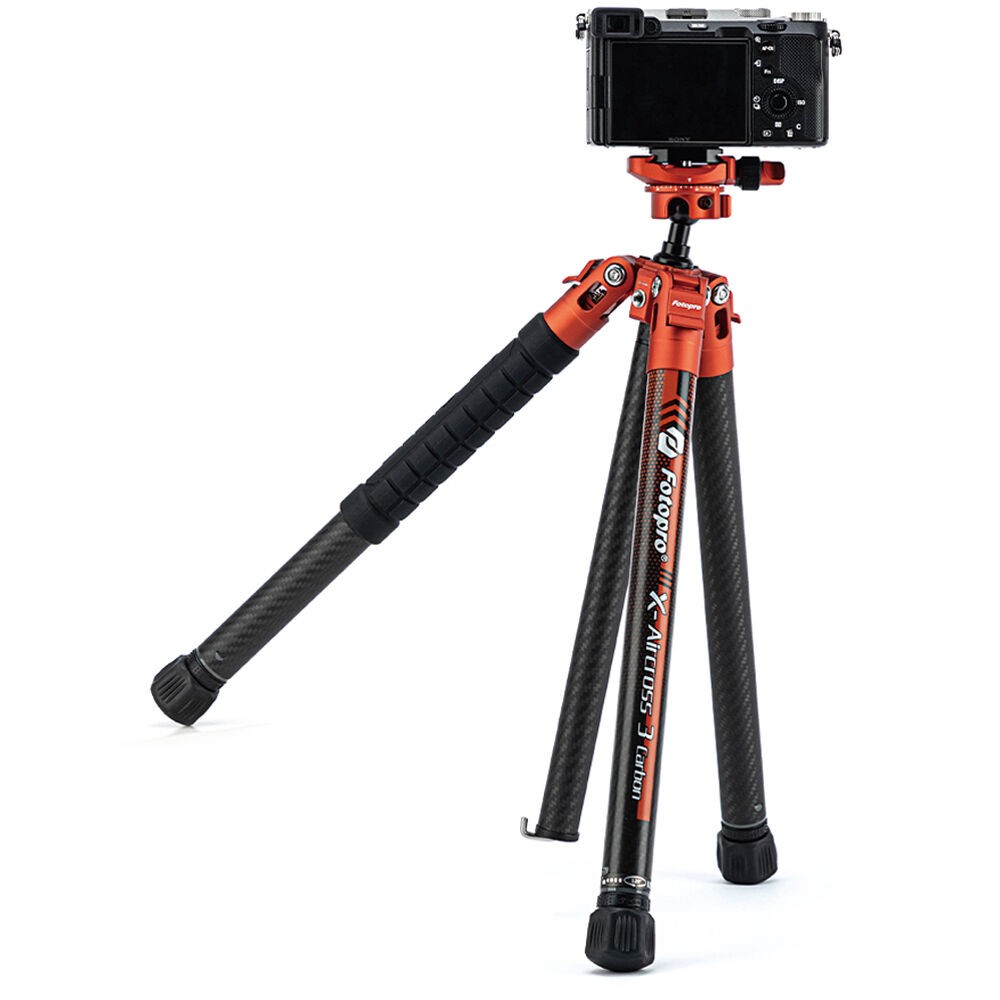 The X-Aircross 3 Carbon Lite Fiber Travel Tripod with FPH-32Q Ball Head from Fotopro is a compact and lightweight carbon fiber travel tripod designed for travel and location photography. It has a maximum height of 59.5" and can support cameras weighing up to 8.8 pounds, but weighs only 1.79 pounds. It folds down to a compact 15.7", easy to tuck into a backpack or carry-on luggage. The legs quickly extend and collapse with a simple twist. Each leg can be positioned independently and has three available locking positions, making it possible to level the tripod on uneven surfaces.