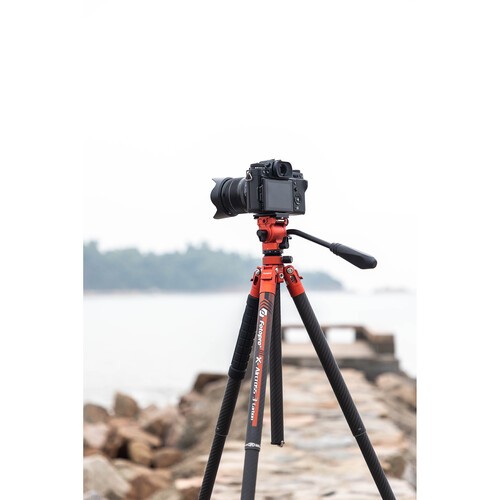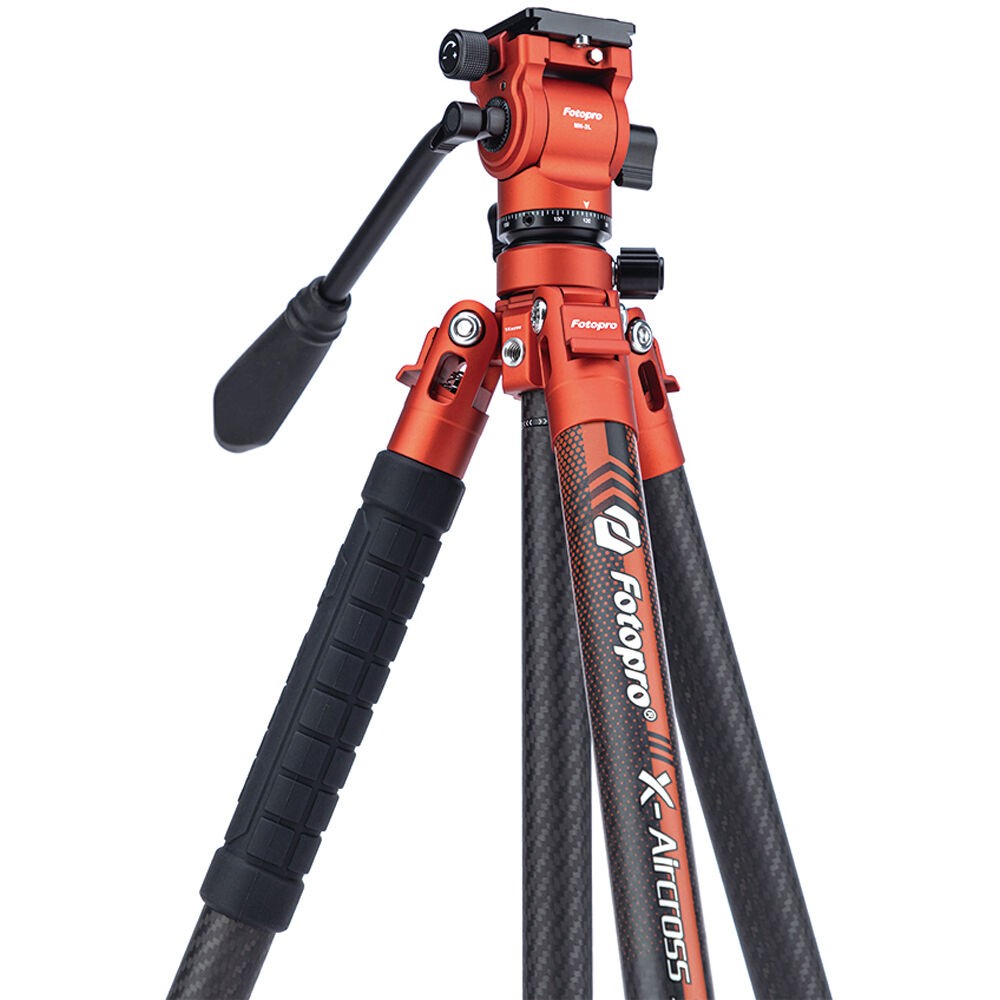 Capture stable images on your travels and achieve smooth tilting and panning with this flame orange X-Aircross 3 Lite Video Carbon Fiber Tripod from Fotopro. With a total weight of 2.3 lb including its fluid head, the portable X-Aircross 3 Lite Video folds down to only 17.9", making it ideal for travel. It can support a camera rig up to 11 lb.