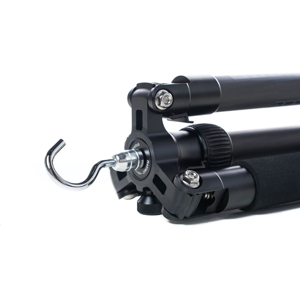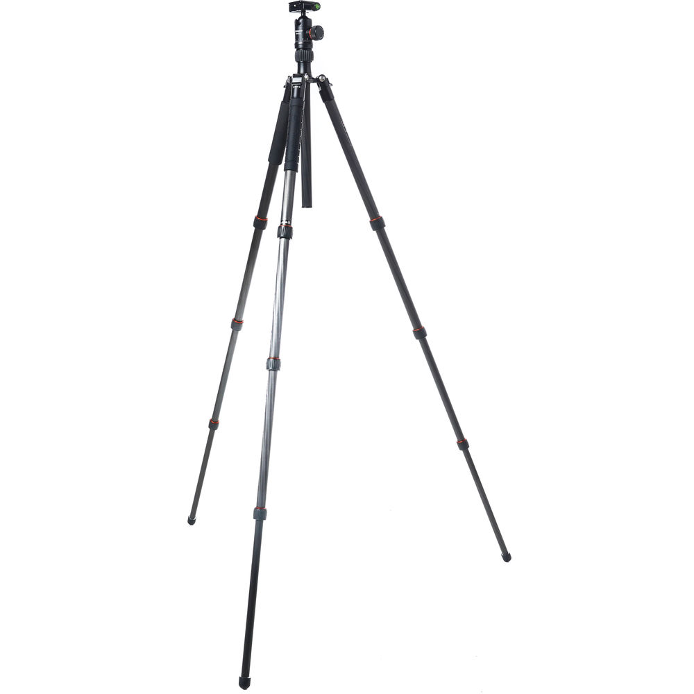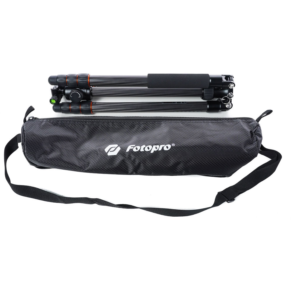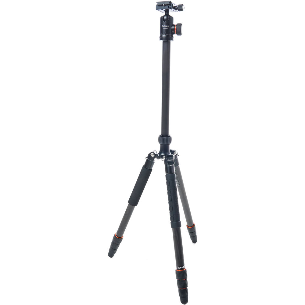 The black X-GO Plus Carbon Fiber Tripod Kit with FPH-52Q Ball Head from Fotopro is a 4-section carbon fiber support that has a twist lock leg system that allows, along with the rapid center column, for a maximum height of 51.5". Splaying the legs completely out enables the tripod to go as low as 9.8", and the variable leg angles allow the tripod to conform to uneven terrain. The tripod's ball head has two separate knobs, one that controls the movement of the ball, which can be positioned at a 90° angle, and a second knob controls the 360° pan. A bubble level is included to help you maintain a level horizon, and one of the legs is removable, enabling it to convert into a monopod. This allows you to have a camera support when a tripod cannot enter certain areas. Additionally, the legs fold in the reverse making it compact for storage and transport.
