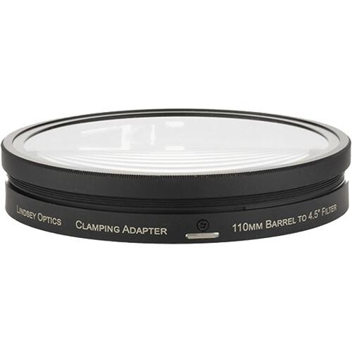The 110mm to 4.5" Filter Lever Clamp Adapter from Lindsey Optics allows you to integrate 4.5" cine filters into your camera configuration. The adapter is compatible with 110mm lens diameter and features a lever to tighten and loosen the clamp's hold.