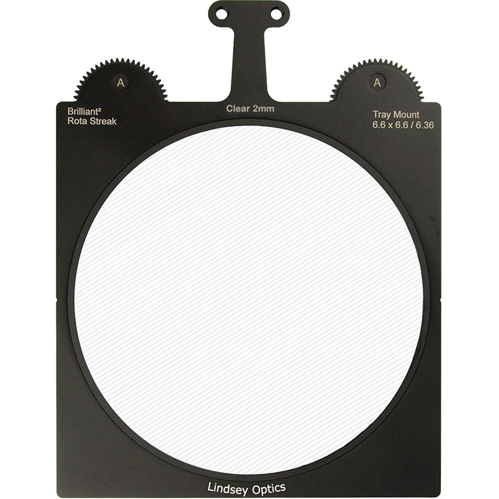 This Brilliant² Rota-Streak Filter from Lindsey Optics adds an in-camera 2mm two-point streak effect to bright lights and highlights in a scene, without adding any color to the effect. Its frame is compatible with most 6.6 x 6.6" matte boxes. Rotate the filter from either side of the lens, either manually or by using a motor, to orient the filter's effect in your desired position.