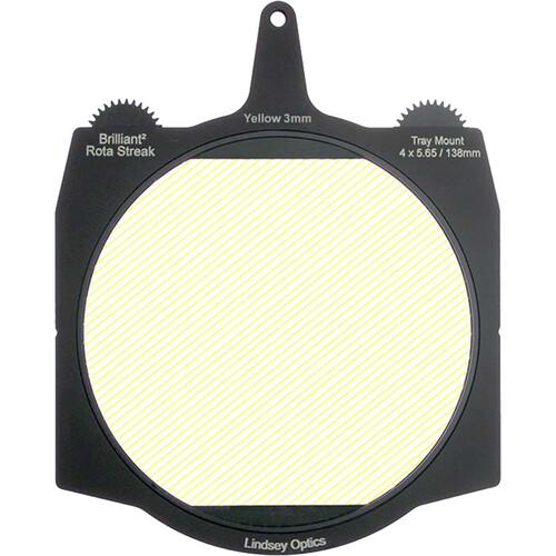 This Brilliant² Rota-Streak Filter from Lindsey Optics adds a yellow-tinged, two-point streak effect on bright lights and highlights in the shot. Its frame is compatible with most 6.6 x 6.6" matte boxes and features two integrated gears, one on each side of the tray, for flexibility in rotating the filter from either side of the lens. Rotate the filter manually or use a motor to orient the filter's effect in your desired position.
