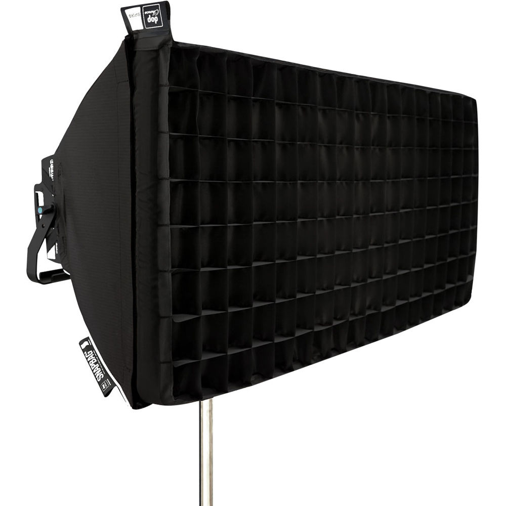 The 40-degree Snapgrid for Gemini 2x1 Horizontal Array LED Panels from Litepanels snaps on the required Snapbag softbox in seconds and tunnels the light's output forward, tightening the beam spread, controlling spill light, and enabling selective lighting.