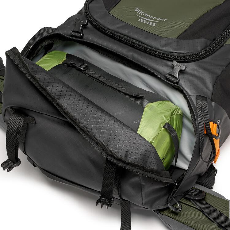 This pack is made from 100% recycled carbonate-coated 420D nylon that is durable and resistant to abrasion, dirt, mud, and moisture. The interior lining is also made from 100% recycled fabric. The camera insert is made from 50% recycled fabric and the AW cover is made from 100% recycled fabric.