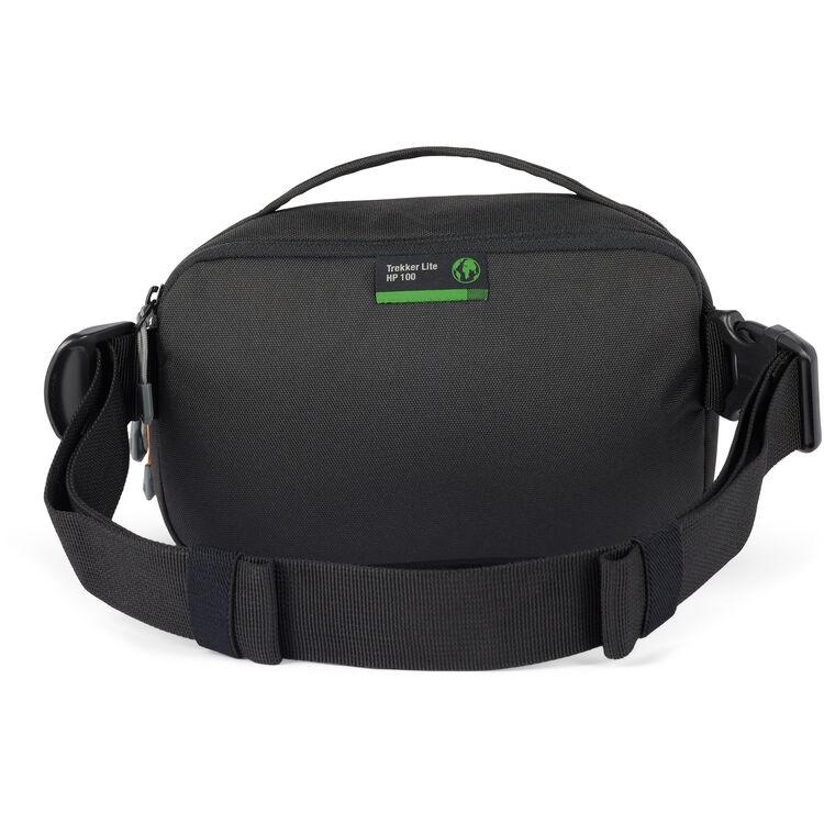 The gray Trekker Lite HP 100 Hip Pack from Lowepro accommodates a small crop-sensor mirrorless camera, such as the Sony Alpha 6000 series or similar, without the view finder but with two small lenses, or a compact camera and an action cam. There is also room for your smartphone and extra items including snacks, sunglasses, small accessories, and a compact tripod, such as a GorillaPod 3K. The UltraCinch compression system helps stabilize your gear while you are moving. Simply pull the elastic strap around your camera and gear to keep it in place. The front compartment has an organizer pocket and a key leash. An adjustable and removable shoulder strap is adjustable and has a side-release buckle on one end, so you can clip and unclip the bag while wearing it.
