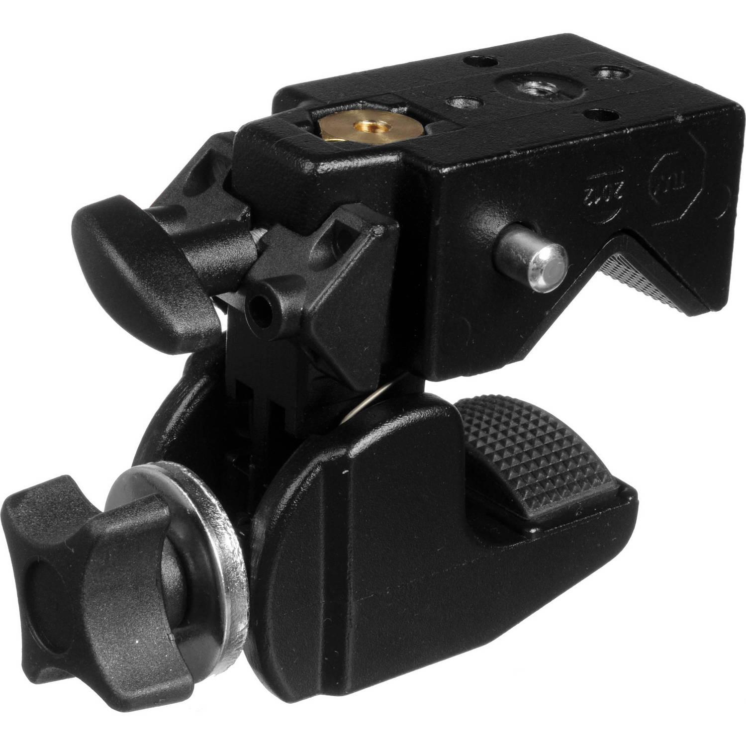 The Manfrotto 035BN Super Clamp allows binoculars to be attached to a tripod head or fluid head.