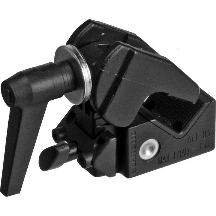 The Manfrotto 2915 Super Clamp is made of lightweight cast alloy. The Super Clamp is a very versatile tool and it holds just about anything: cameras, lights, umbrellas, hooks, shelves, plate glass, cross bars, even other Super Clamps. In turn, the Super Clamp can be securely mounted on any tube from 0.5 to 2.1". An attached wedge can be removed and placed in the jaw for flat surfaces. A built-in socket allows the use of over 30 attachments to hold anything from backgrounds to lighting fixtures.