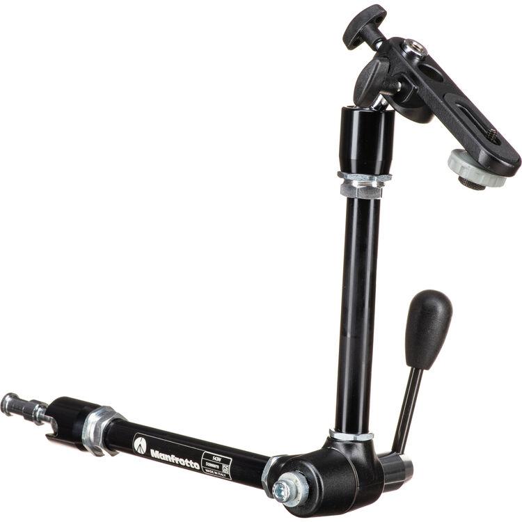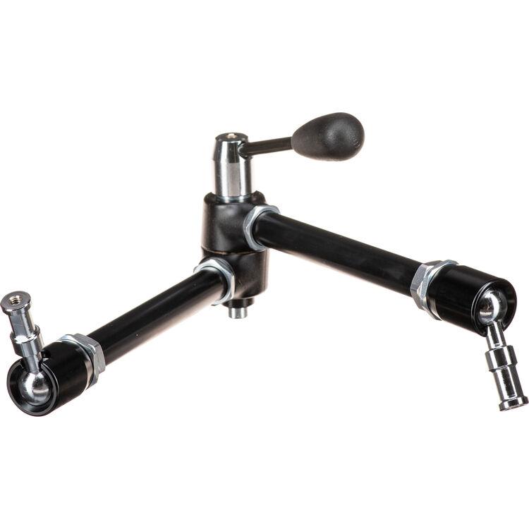 The Manfrotto 143A Magic Arm is a fully articulated arm with 90° pivotable and 360° rotatable ends, and an elbow that rotates 360°. The lever tightens and locks for precise positioning of a small light head or camera. The Magic Arm has 5/8" studs on ball joints at both ends with 3/8 and 1/4" female threads.