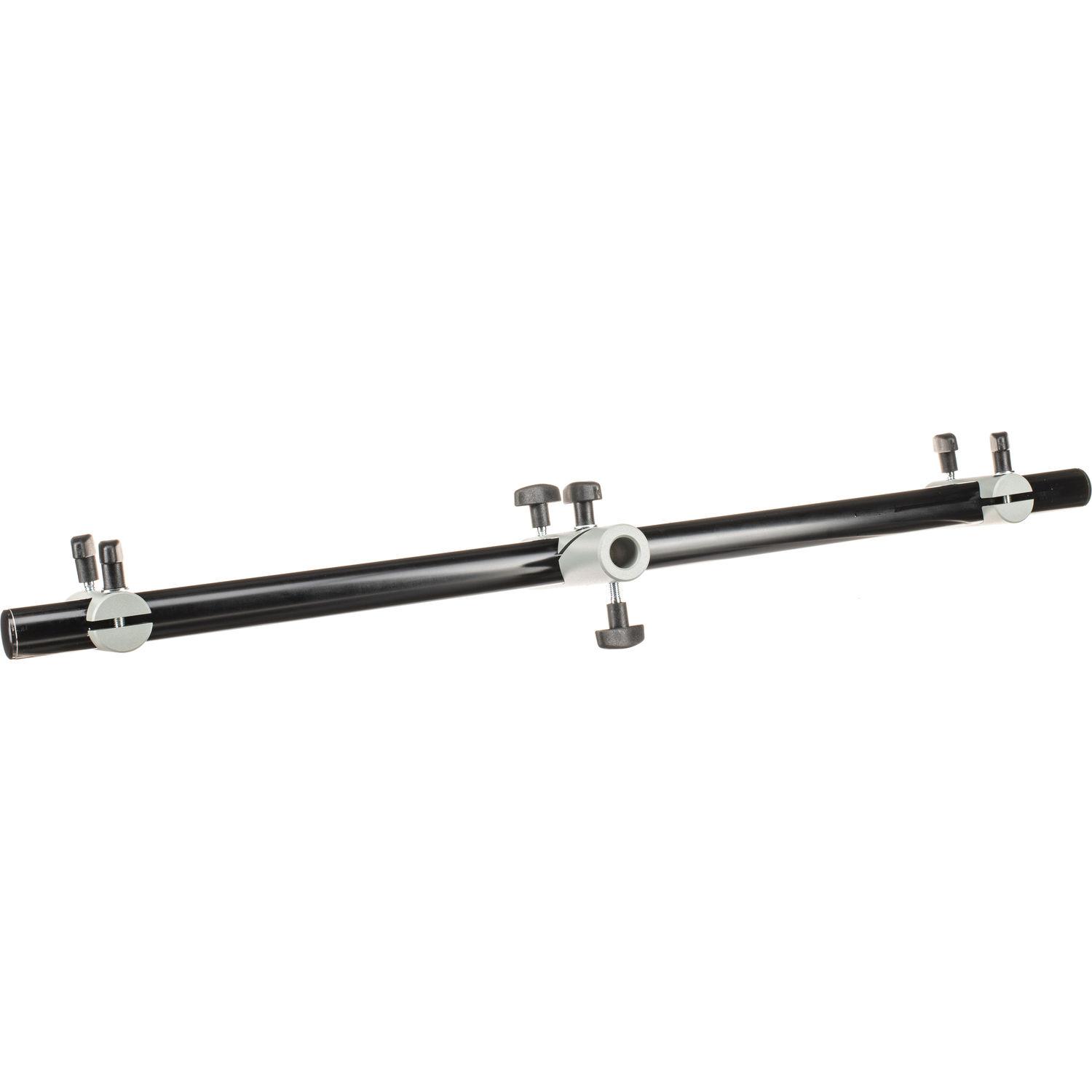 The Manfrotto 154 Triple Microphone Holder accommodates up to three microphones of any type. The entire bar mounts onto a stand or bracket with 16 mm pin and measures 65cm in length.
