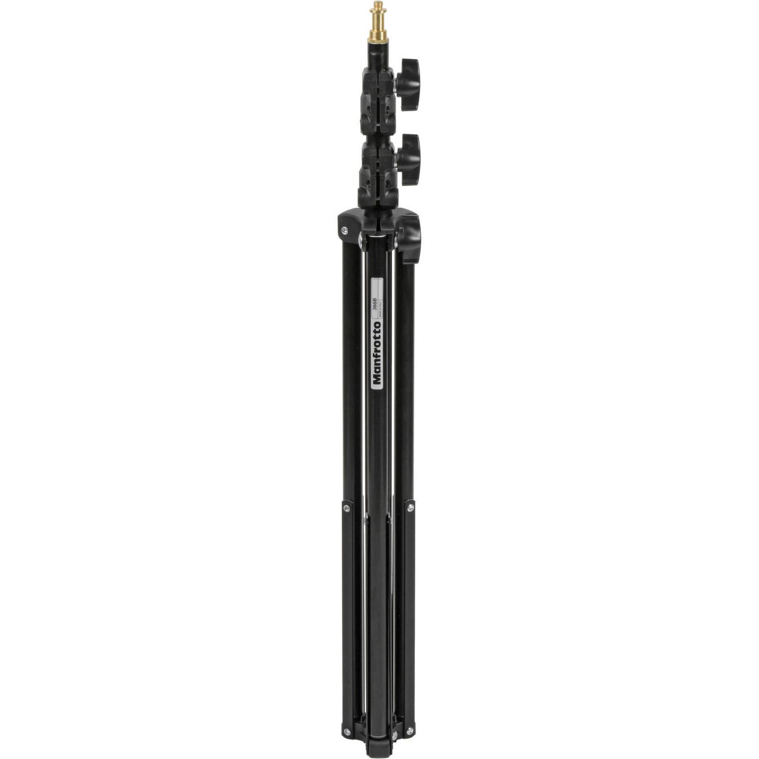 This is a Manfrotto Basic Black Light Stand that extends to a height of 6.4' (1.9 m). It is designed to accommodate small light fixtures, reflective panels, or small boom arms.