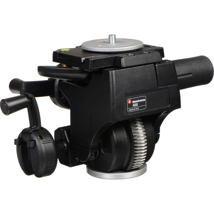 This 400 3-Way Geared Pan-and-Tilt Head from Manfrotto has a load capacity of 22.1 pounds and can be attached to studio stands, tripods, or other support systems that feature a 3/8"-16 screw mount. The head provides 360° of rotation, 90° of forwards and 30° of backwards tilt, as well as 7.5° of left or right tilt. Each of these three movements function independently of each other and have individual control knobs that utilize incremental geared adjustments, which help to ensure that any device mounted to this 400 3-Way Geared Pan-and-Tilt Head is precisely positioned relative to the subject.