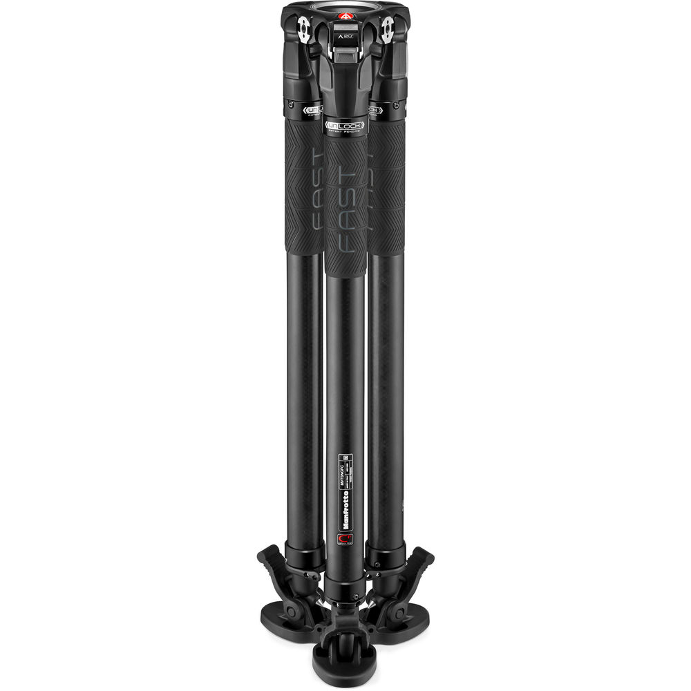 The Manfrotto 635 FAST Single Leg Carbon Fiber Tripod Legs have a 75mm bowl base and load capacity of just over 44 pounds. This tripod has a maximum height of just over 61", and with the legs spread wide a minimum operating height of 11". The three leg sections feature synchronized twist-lock leg locks, which provide for faster leg adjustments of the leg height. The bowl base has three mounting fittings compatible with both the ARRI anti-twist and Manfrotto anti-rotation systems for mounting accessories.