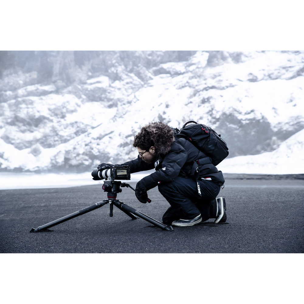 The single-tube carbon fiber tripod provides a 44 lb maximum load and a 75mm ball head mount. The 504X head mounts onto the 635 tripod using the included leveling ball. A carry bag is included to store and transport the entire system.