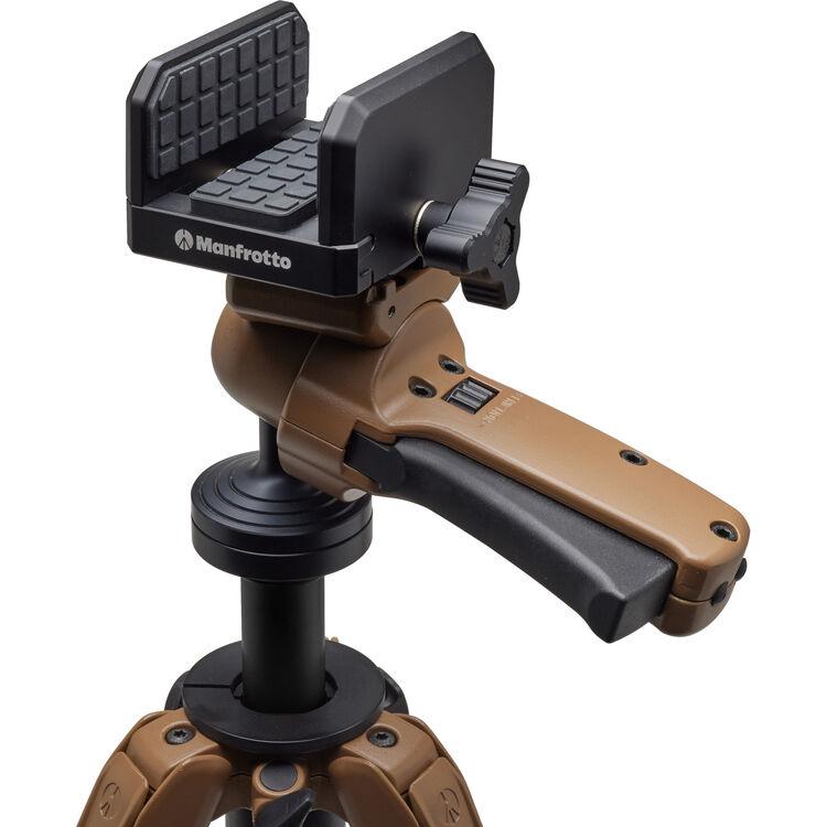 The Alpha S.H.O.T. Carbon Fiber Tripod with Grip Head Kit from Manfrotto provides a stable support for hunting and shooting, with sturdy three-piece D-shaped legs and a ball head with trigger grip for effortless aiming of your firearm. Squeeze the trigger to adjust your aim and release it to lock into position. The quick detach mechanism makes it easy to swap a firearm with an optic. The tripod features an independent center column for quick height adjustments and a counterweight hook at the bottom.