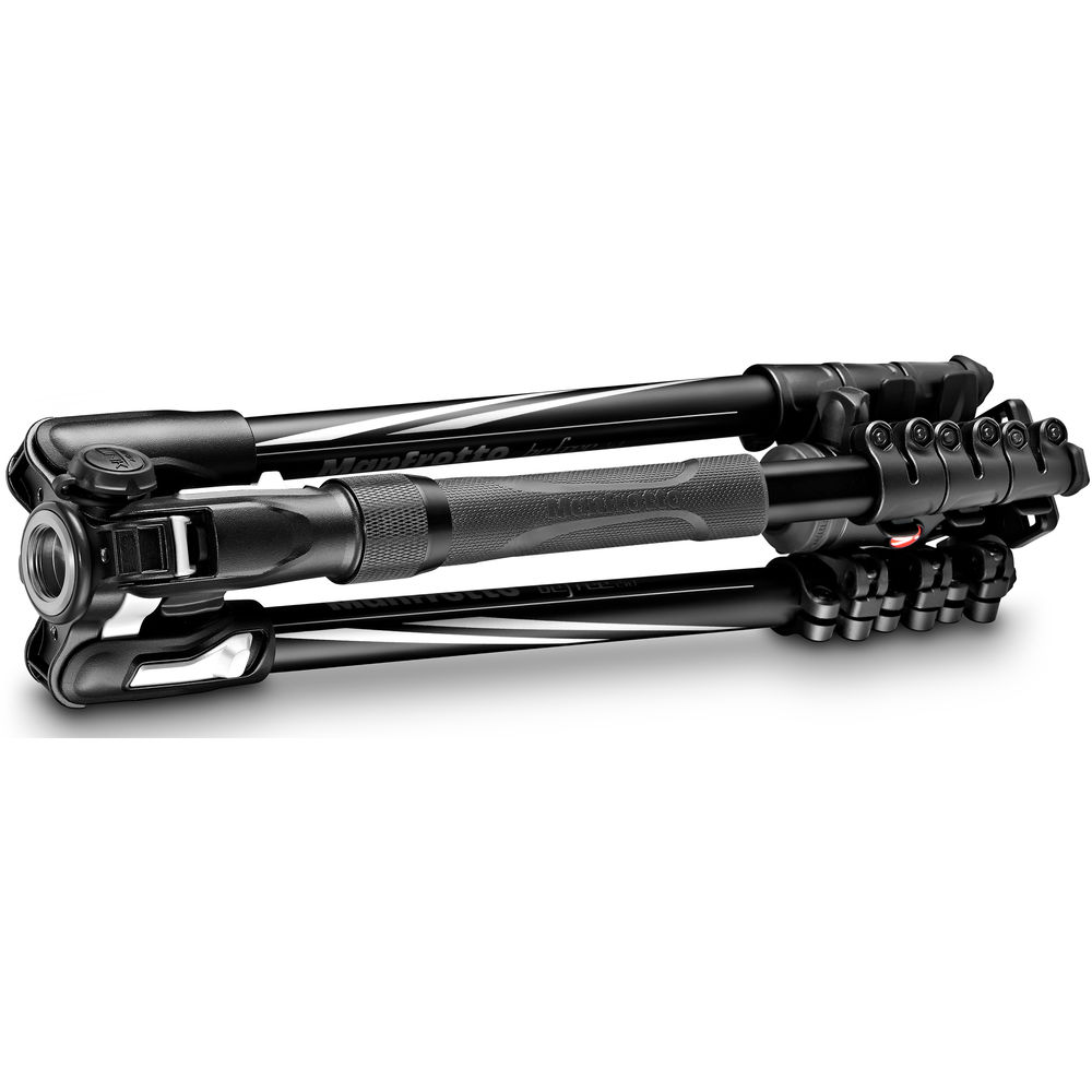 The all-in-one Manfrotto Befree 2N1 Aluminum Tripod with 494 Ball Head is a 4-section support with a lever-lock leg system that unlocks with ease and enables the tripod to reach a maximum height of 59.3". The independent leg spread allows it to conform to uneven terrain and allows the 3.7 lb tripod to have a minimum height of 16". When you're ready to go to your next destination, the legs close in the reverse to a folded length of 16".