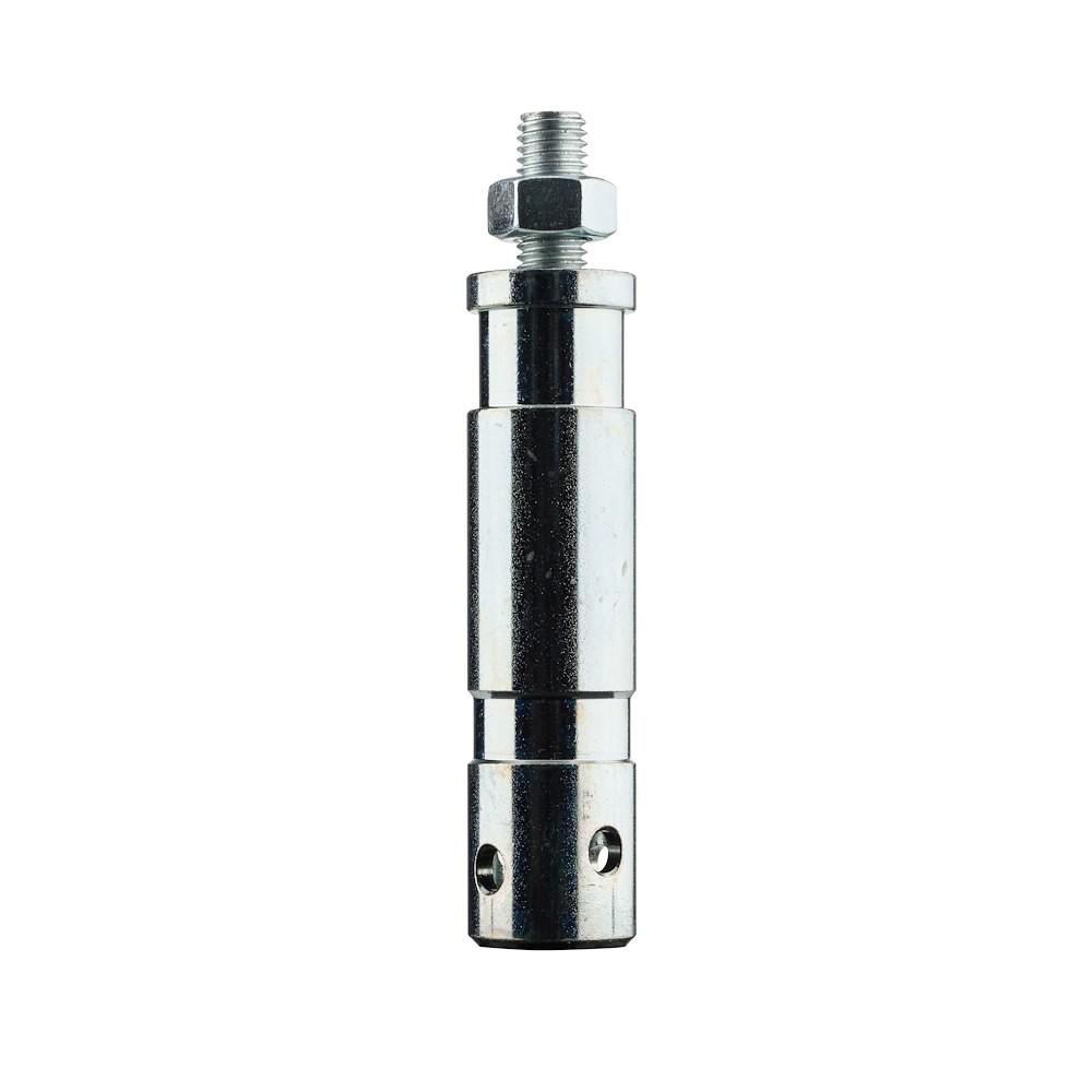 The Manfrotto M12 Spigot with 28mm Pin affixes to the yoke of a lighting fixture on the threaded end and mounts on "Junior" 1 1/8" (28mm) receiver stands or hangers on the other.