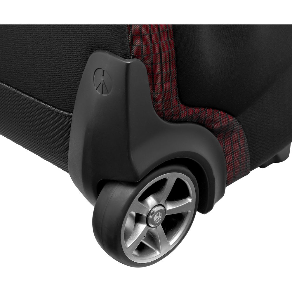 Carry the Pro Light Reloader Air-55 Camera Roller Bag with the side and top grip handles, or roll it on the two rear transport wheels. These wheels are user-serviceable, and for security, there is a TSA-approved, built-in combination zipper lock. For weather protection, the bag has a fold-out rain protector. External connections are provided for attaching a tripod or other gear. The light gray interior fabric makes it easier to locate gear in low light.