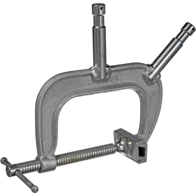 The Matthews C-Clamp with 2 Baby Pins has 2 separate 5/8" diameter pins at different angles so that the light fixtures may fit with minimal clearence.