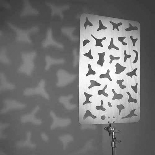 The 18x24" Cello Cucoloris from Matthews projects a more subtle pattern. The pattern itself depends on the distance of the light source and the distance to the background. This "cookie" has webbing on three sides to prevent injury and present a more finished look.