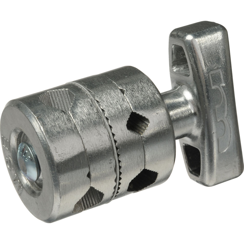 The Gag is a combination of two sets of Grip Head plates on one shaft, with one locking spin handle. It serves many purposes, such as making a yoke with a Grip Head at each end or converting a Double Extension arm to a triple Extension Arm.