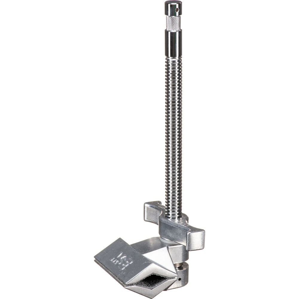 The silver-finished Matthews Matthellini Clamp with 6" End Jaw provides strong, solid gripping of round, square, or rectangular tubing and many other common and irregular shapes. The End Jaw has the fixed jaw mounted at the end of the threaded portion of the shaft. The threads end in a Baby (5/8") pin for mounting fixtures or other grip items.